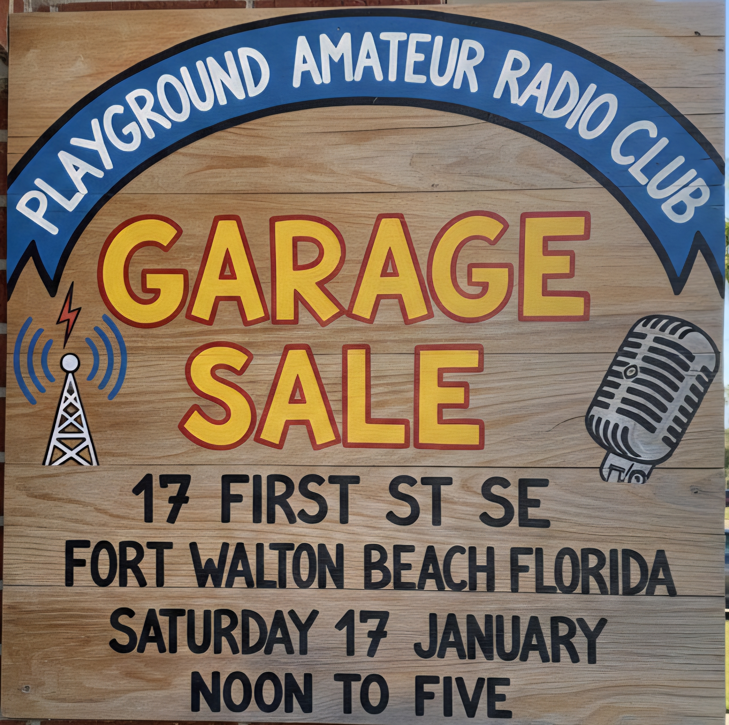 The Playground Amateur Radio Club cordially invites YOU and all your friends to the Clubhouse on Saturday January the 17th 2025 starting at Noon and going until Five for the Playground Amateur Radio Club Garage Sale! If you’re looking to get, find a gem, item, needed component, or product to enhance your shack, this is your chance to get in and get it early before the next major event!